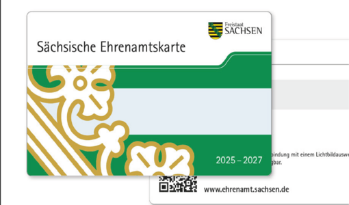 In Ihrer nunmehr 6. Auflage erscheint die Sächsische Ehrenamtskarte, die vom Sächsischen Staatsministerium für Soziales und Gesellschaftlichen Zusammenhalt vergeben wird und eine attraktive Möglichkeit der Wertschätzung für bürgerschaftliches Engagement im Freistaat Sachsen ist. Die KArte kann nun wieder beantragt werden.